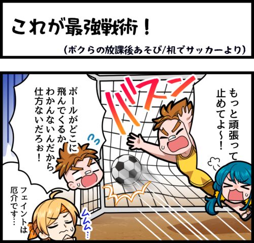 皆さんこんにちは~♪きなこです。 今日は前回の『机でフットサル』の後半戦をお届けします。 1-1の同点で前半を終え、後半に突入です。 序盤は両者ゴールを許さない展開でしたが、相手が攻めてきて ディフェンスをよけられてしまい完全に相手の流れになって…
