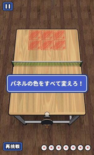 皆さんこんにちは!きなこです♪ 今日は『机で卓球』で対戦しました。 チャレンジモードのエリア5 【パネルの色をすべて変えろ!】に挑戦します!! まずは一番左の後ろを狙います 強めに打ってみると~真ん中のパネルとの境目にあたり 2枚変えに成功♪ 続いて…