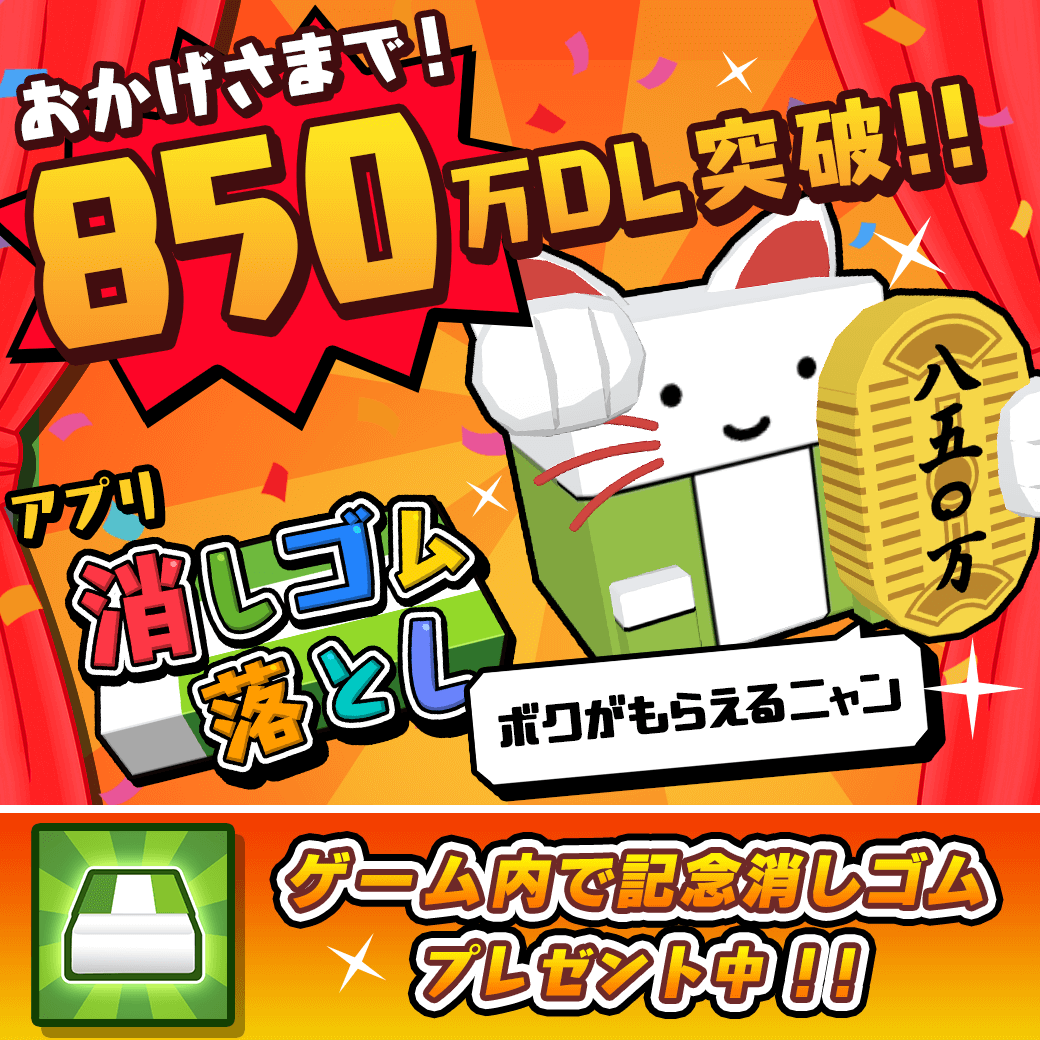 「消しゴム落とし」はこれからもアップデートを続けていき、皆さまに愛され続けるゲームになるように、頑張っていきたいと思います!