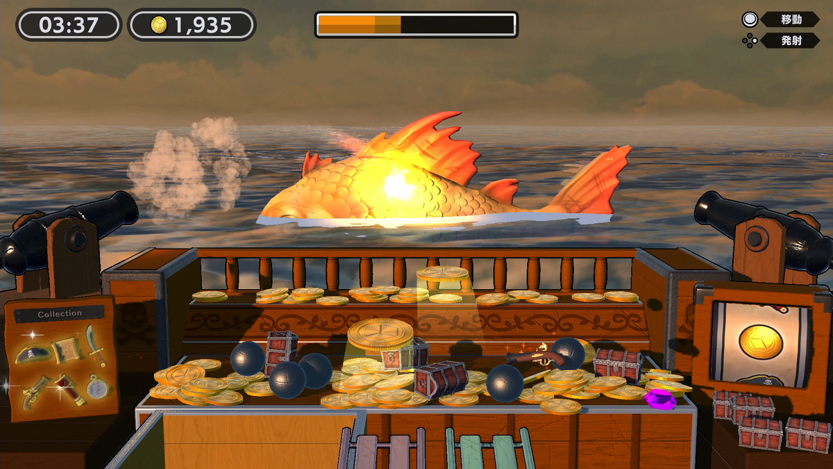 引き続きコインを集めていると宝を乗せた船が来ました!(倒せず😹)